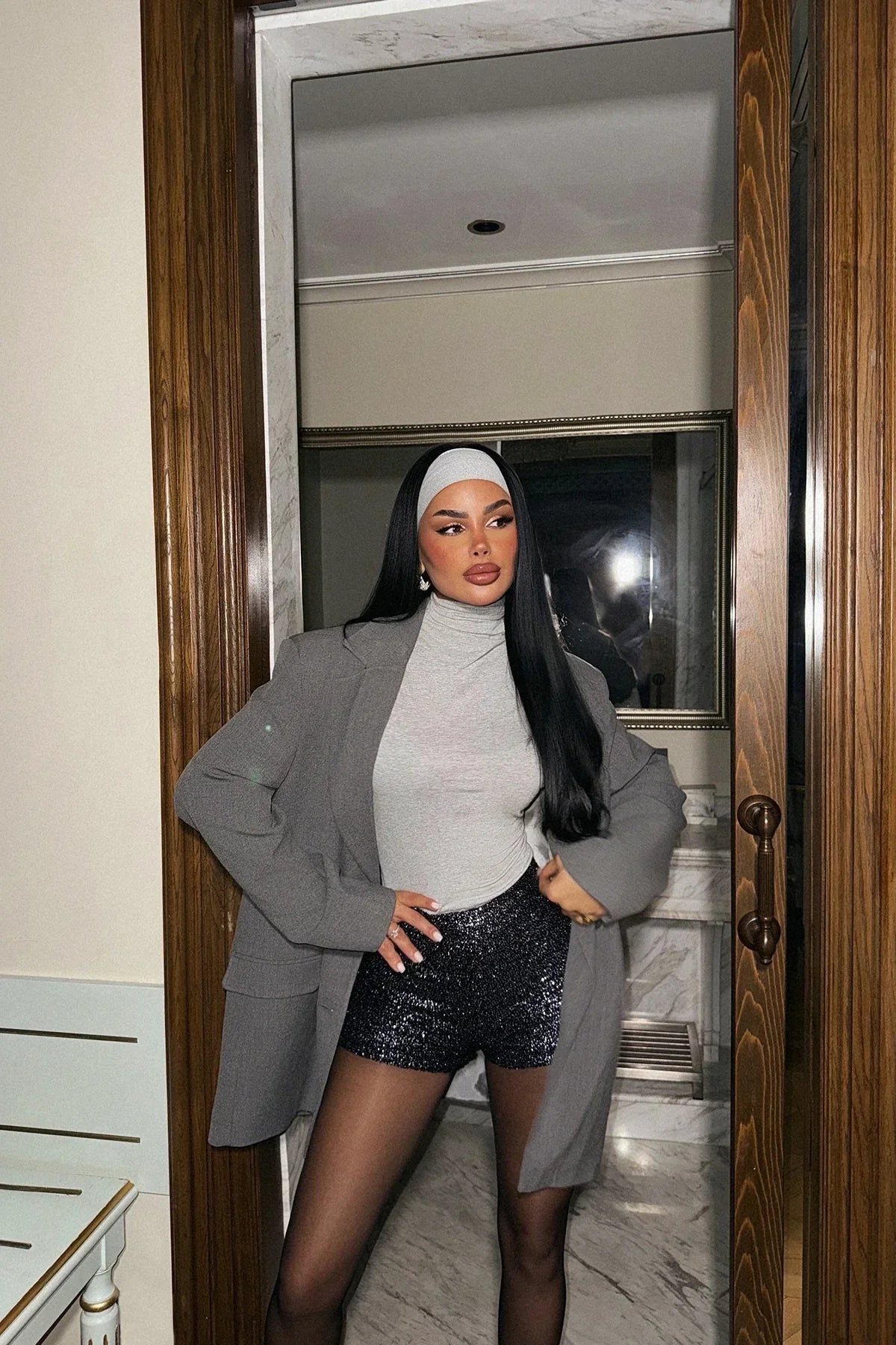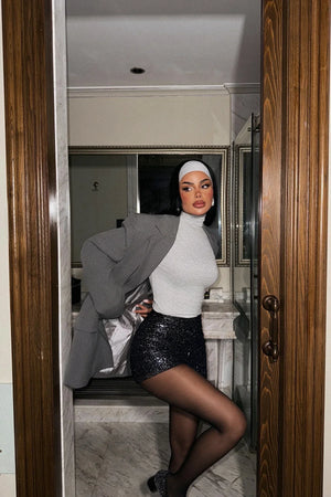 Navy Blue Sequin Detail Shorts